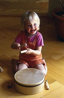 Kinder dürfen Trommeln, Ukulele, Klavier, Flöte und die Gitarre kennen lernen.